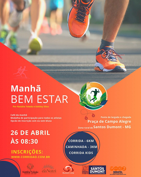 A Prefeitura, por intermédio da Secretaria Municipal de Meio Ambiente Esporte e Lazer – SEMATEL está apoiando a Corrida Manhã Bem Estar, organizada pela nutricionista Natália Toledo.