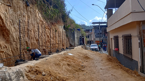 A Secretaria Municipal de Obras está finalizando a construção do muro de contenção na Rua Geraldino Carlos Dias, bairro São Sebastião. A obra foi iniciada depois do desmoronamento de encosta na área, resultado das fortes chuvas ocorridas em fevereiro de 2023. Na época, o incidente causou o bloqueio e interdição da rua.